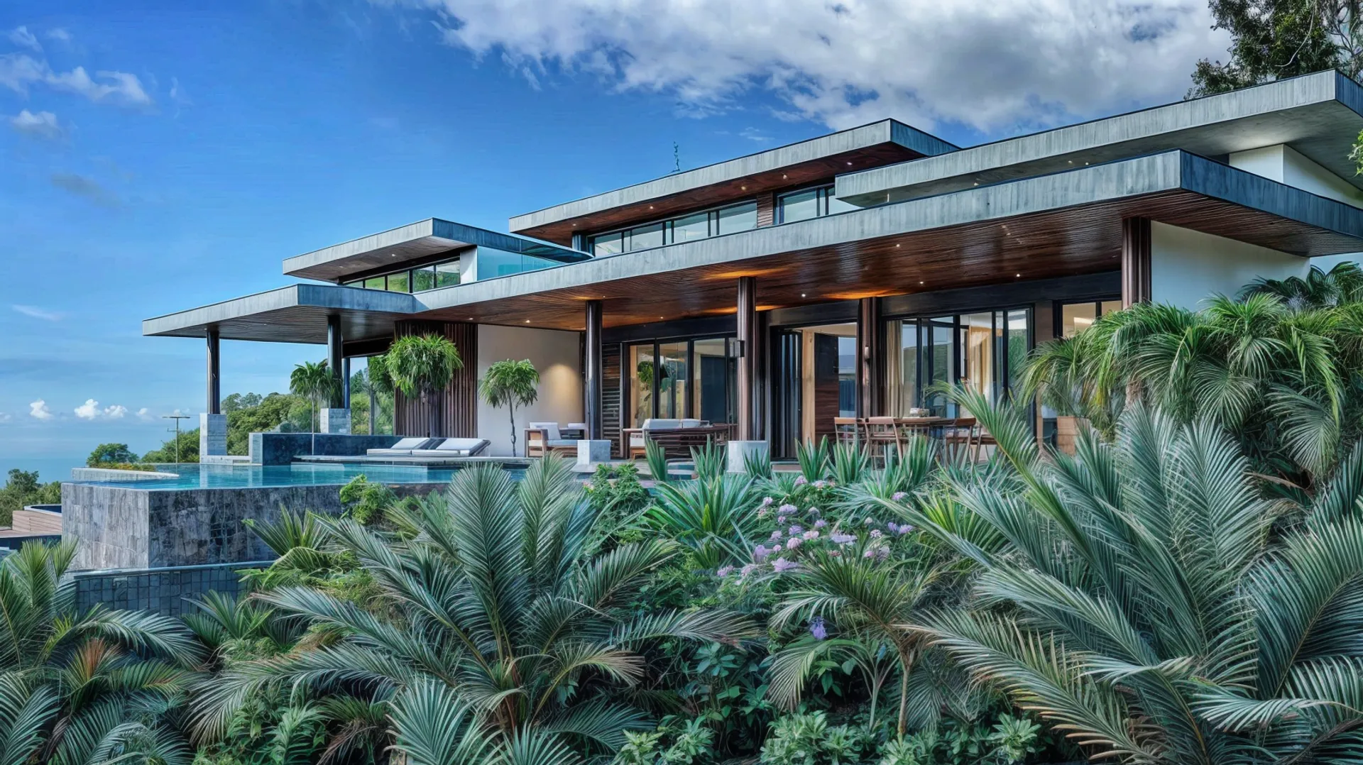 02The design of Costa Verde 38 focuses on openness, light, and organic integration. Floor-to-ceiling glass panels capture panoramic coastal views, while the use of wood, stone, and natural textures enhances the home’s warmth and sophistication. The structure’s clean horizontal lines and deep overhangs not only define its modern character but also provide shade and promote passive cooling, ensuring comfort throughout the day.
