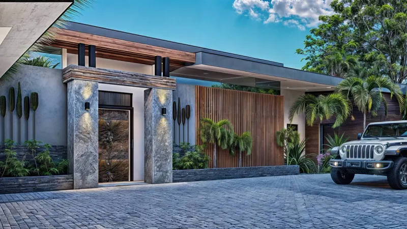 01Designed by 3Astudio, Costa Verde 38 is a masterpiece of modern architecture that seamlessly blends with its natural surroundings. Perched on an elevated site, this residence offers breathtaking ocean views and a design that prioritizes both elegance and functionality. With a sleek contemporary aesthetic, warm natural materials, and expansive glass facades, the home creates a harmonious connection between indoor and outdoor living.