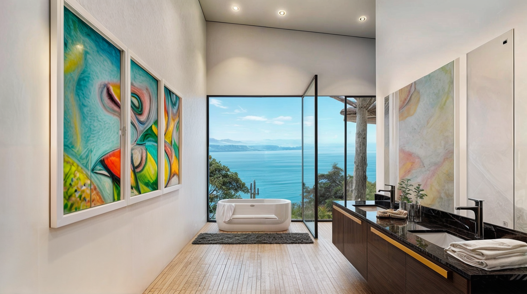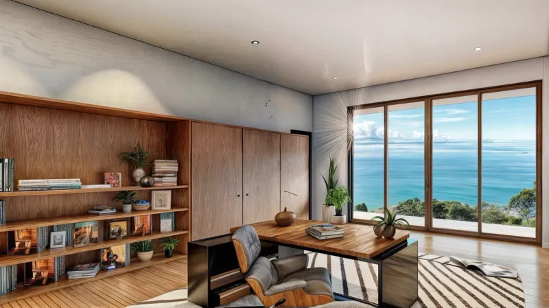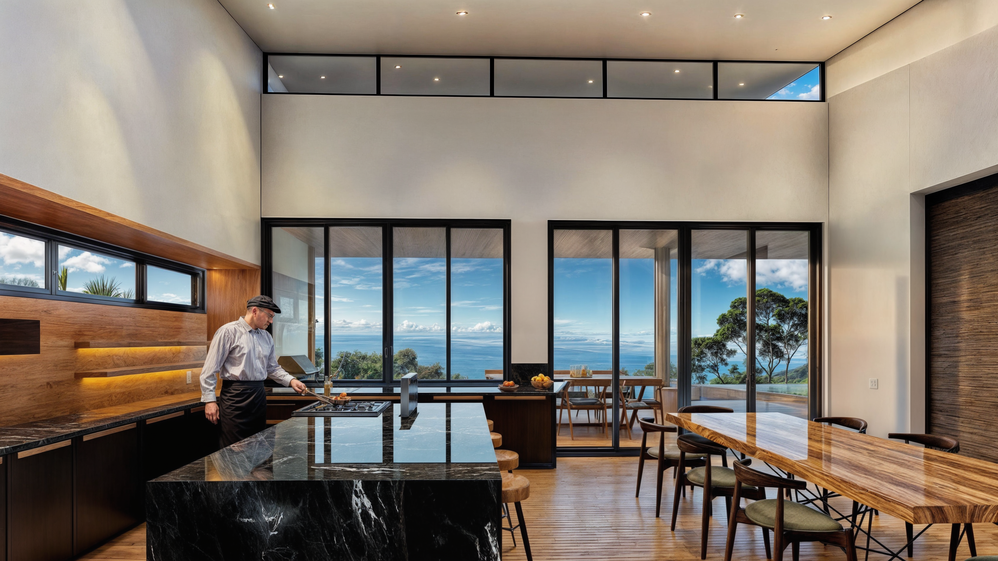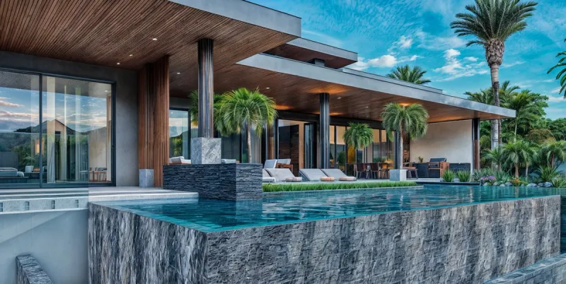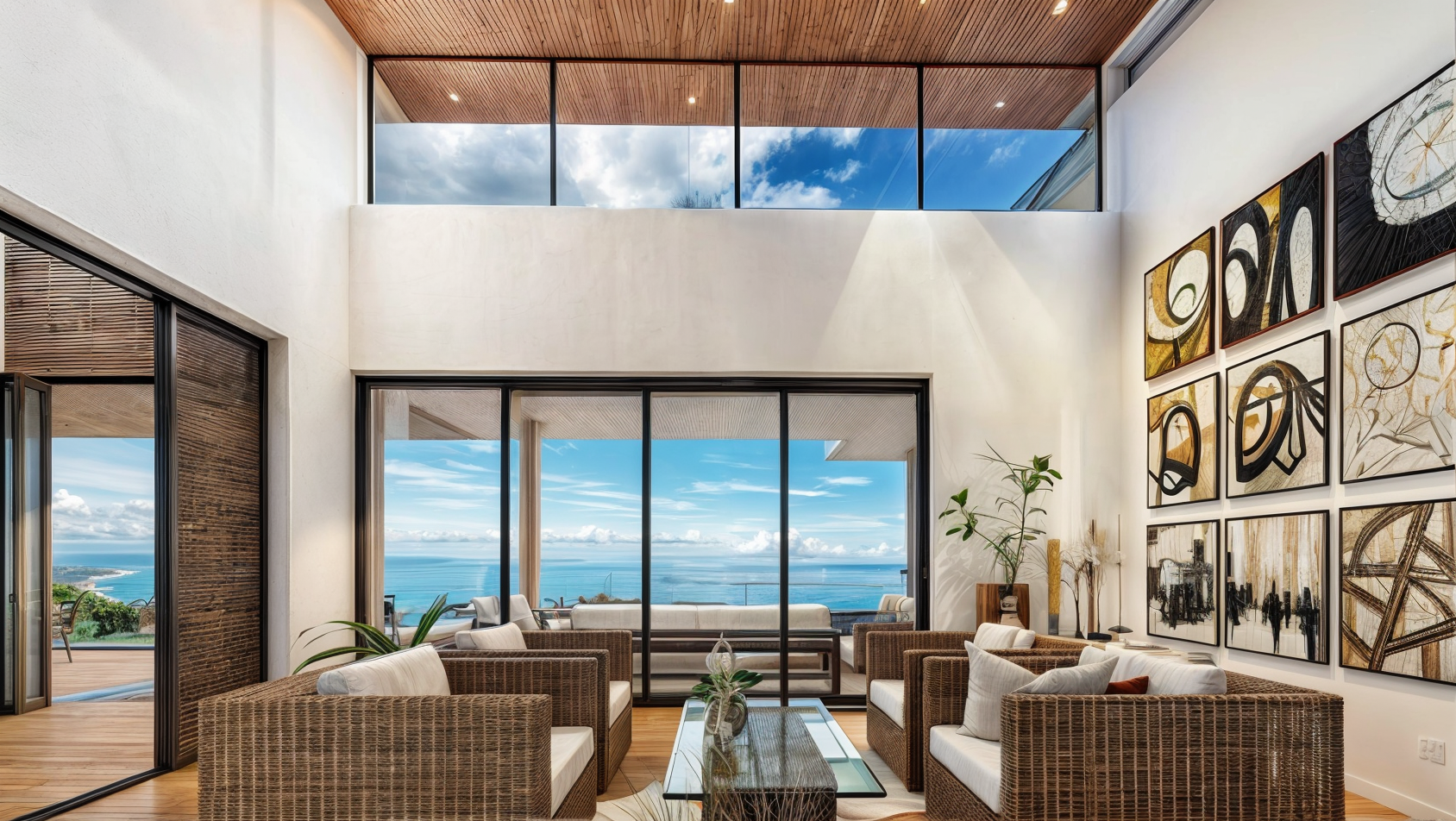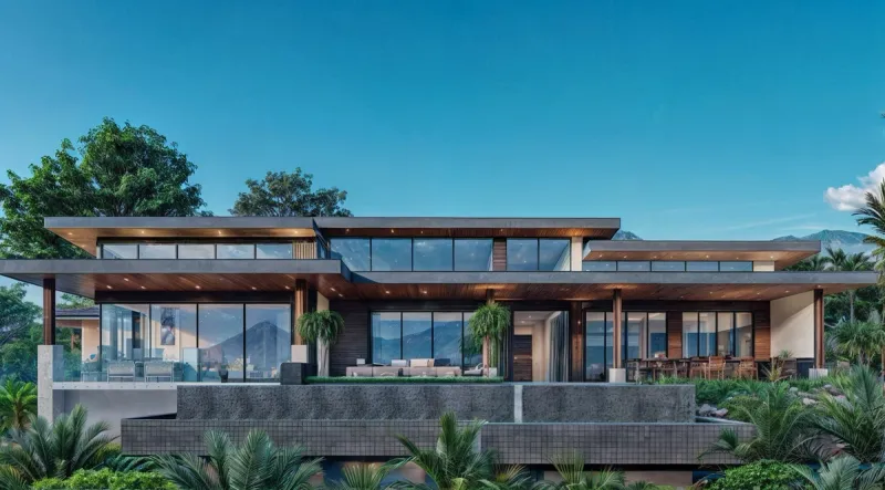 02The design of Costa Verde 38 focuses on openness, light, and organic integration. Floor-to-ceiling glass panels capture panoramic coastal views, while the use of wood, stone, and natural textures enhances the home’s warmth and sophistication. The structure’s clean horizontal lines and deep overhangs not only define its modern character but also provide shade and promote passive cooling, ensuring comfort throughout the day.